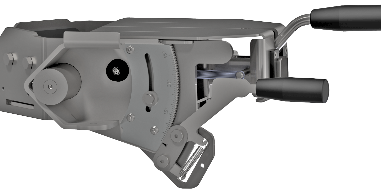 To adjust the tilt of the bit table, you lift up the tilting lever which releases the tilt lock. While holding the tilting lever up adjust the angle of the bit table to your desired angle and release the lever to lock the tilt. |
