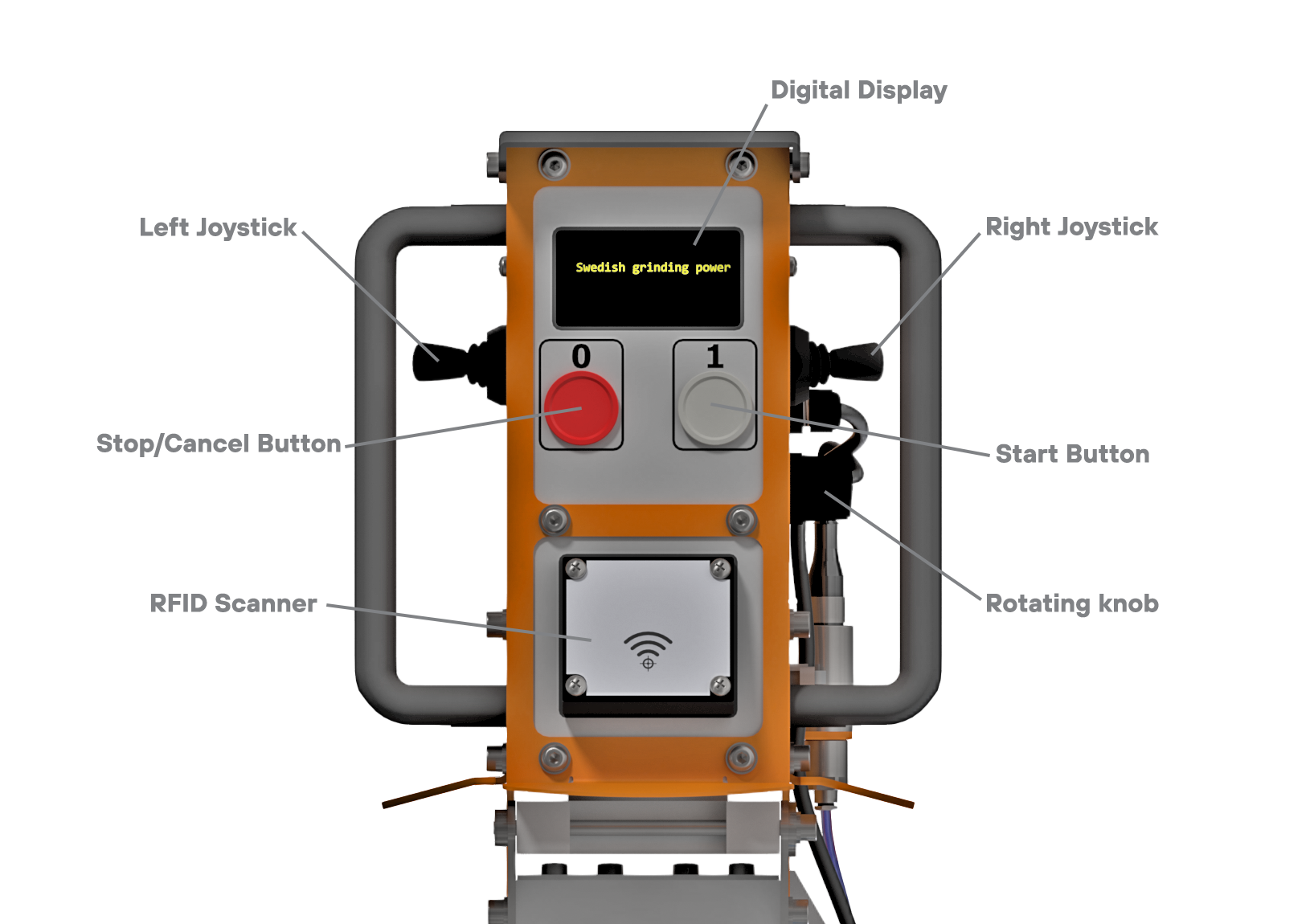 3. Right JoystickThe right joystick is the most versatile controller. In the machine ideal state the right joystick is used to move the arm up and down. By toggling the right joystick backward you enter the machine MENU. In the machine MENU the right joystick is used to navigate between different settings/controls. |