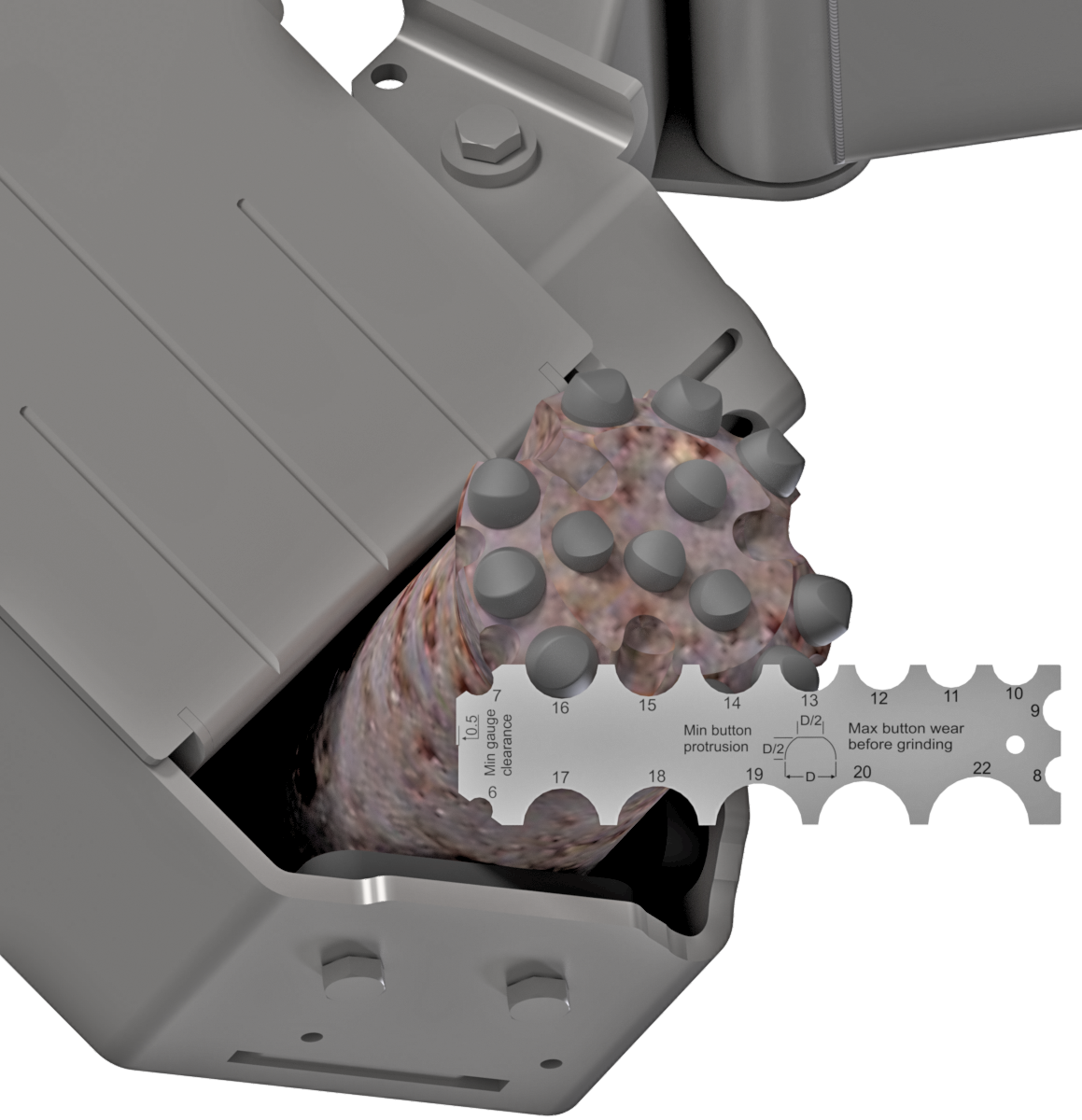 It is important to use the correct sharpening tool for each different type of bit / button you are sharpening. To find the correct tool, you will need to know the size of the button and the profile of the button.