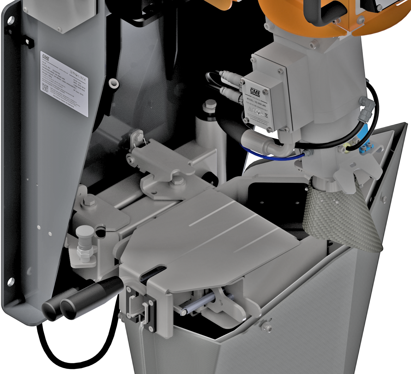 The bit table is designed to be used for both smaller, top hammer bits and bigger DTH bits. For the smaller bits, the bottom plate and the multi bit holder is used, both are standard accessories included with every machine. For larger bits, such as DTH bits with a long shank, the bottom plate can be removed. This is easiest done when the macro adjustment is all the way open. |